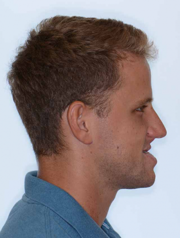 The patient started his orthodontic treatment January, 2014 with the orthodontist. The patient had an upper jaw retrusion with severe deficiency of the midface. He had normal lower jaw length, overjet of approximately 18 mm. Septal deviation and enlarged inferior turbinates were present. The upper arch was constricted and required three-piece Le Fort I maxillary osteotomy. Problem List Severe Maxillary Hypoplasia Class III malocclusion Surgical Planning Maxilla Le Fort I three-piece osteotomy advancement Midface Augmentation with bone graft Inferior Border Osteotomy for asymmetry in correction Midface augmentation with bone graft for acute augmentation Intranasal surgery to correct the nasal septal deviation and inferior turbinectomies Surgery Performed Le Fort I Three-Piece Osteotomy Bite Correction Nasal Base Correction Medium Size Cheek Implants Note: Current after photos was taken two months after surgery. We will update the photos after the patient has had more time to heal and has his braces removed.